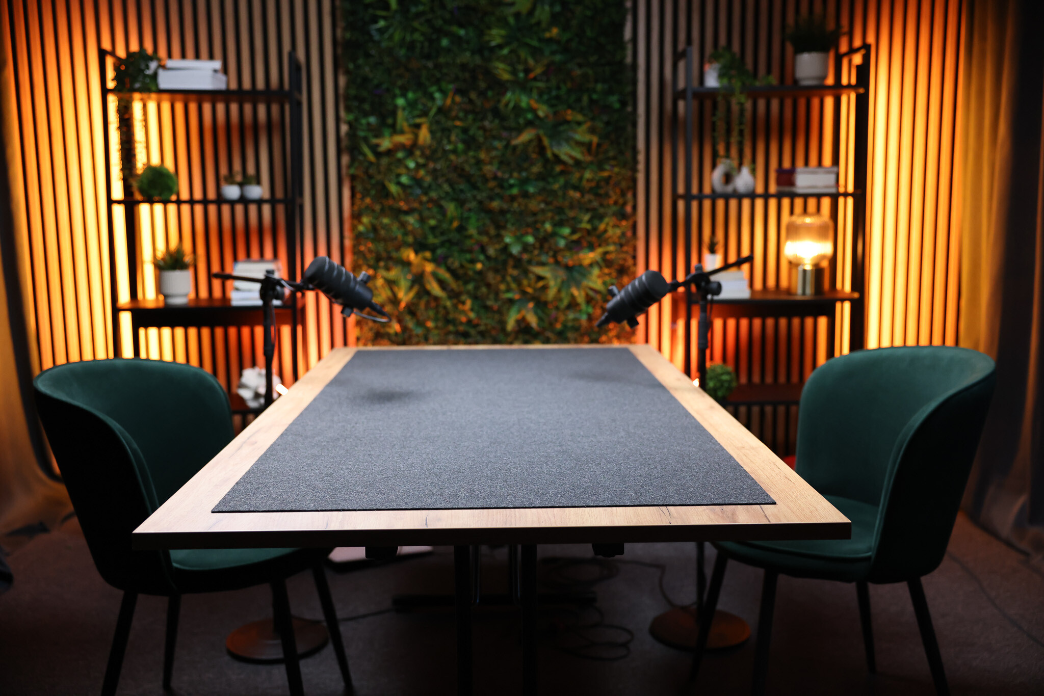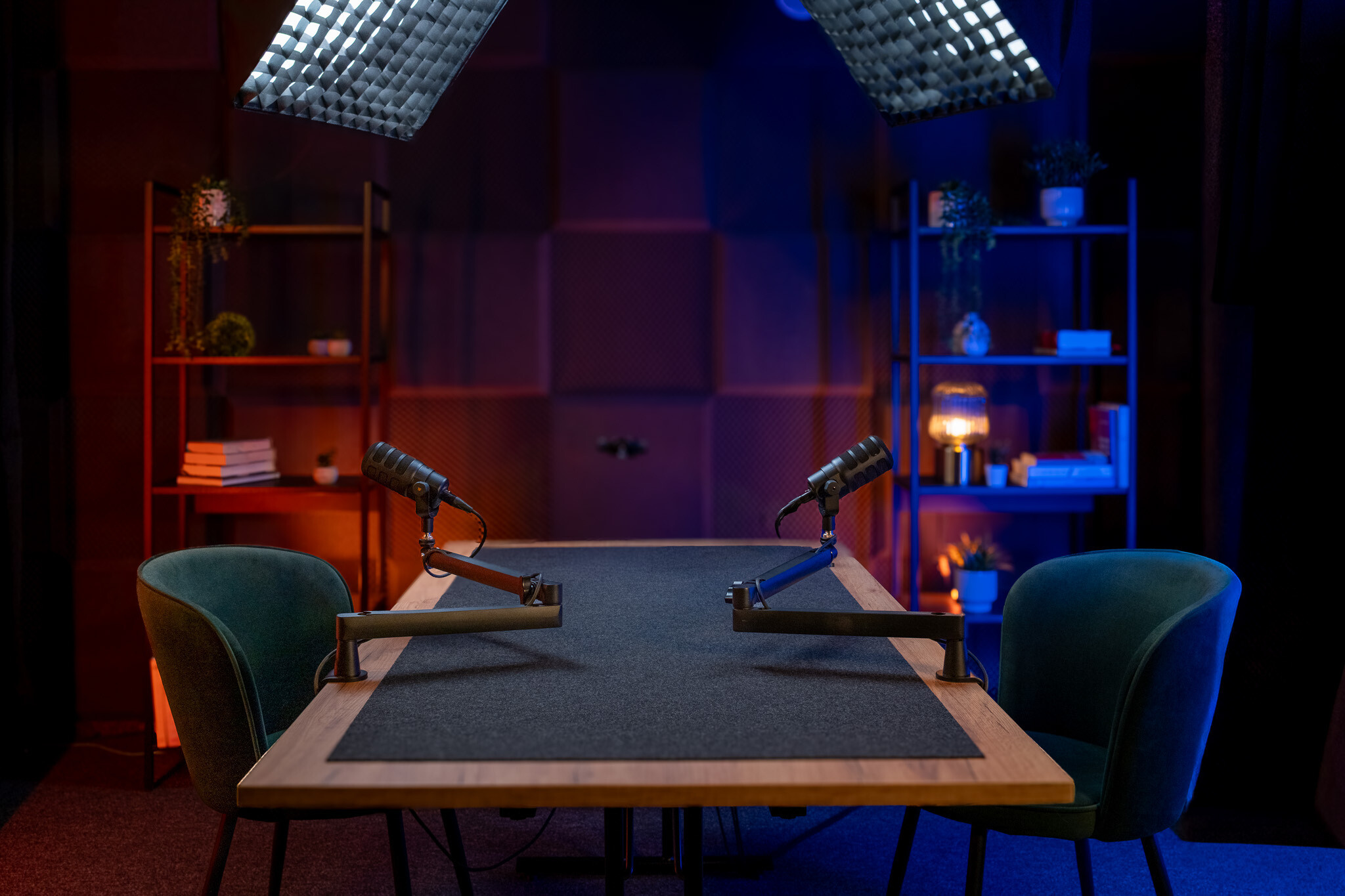 Nasze studio podcastowe w Gdańsku to idealne miejsce do realizacji nagrań audio i wideocastów, webinariów, szkoleń i innych treści. Dysponujemy przygotowaną akustycznie przestrzenią, sprzętem nagrywającym audio i wideo oraz prompterem.